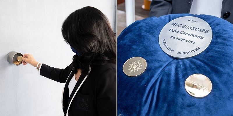 Dlhoročné zamestnankyne Monica Somma, manažérka kategórie, MSC Cruises a Jolette Vincenzi - vedúca výroby, Fincantieri, vykonali v úlohe kmotier tradičný námorný rituál vložením dvoch mincí do kýlu lode ako symbolický znak požehnania a šťastia počas stavby lode a jej budúceho života na mori.