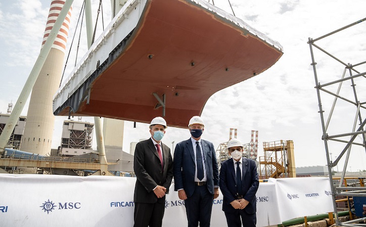 Dlhoročné zamestnankyne Monica Somma, manažérka kategórie, MSC Cruises a Jolette Vincenzi - vedúca výroby, Fincantieri, vykonali v úlohe kmotier tradičný námorný rituál vložením dvoch mincí do kýlu lode ako symbolický znak požehnania a šťastia počas stavby lode a jej budúceho života na mori.