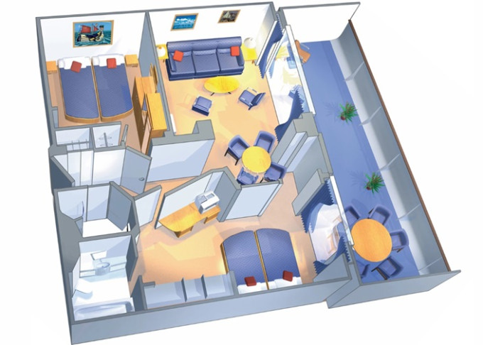 | VP - Ocean View Panoramic Suite (bez balkónu) 38 m². Panoramatické neotvárateľné okná. Max 6 osôb. Výhody Suite. | 7 848 € 1 962 € za osobu |