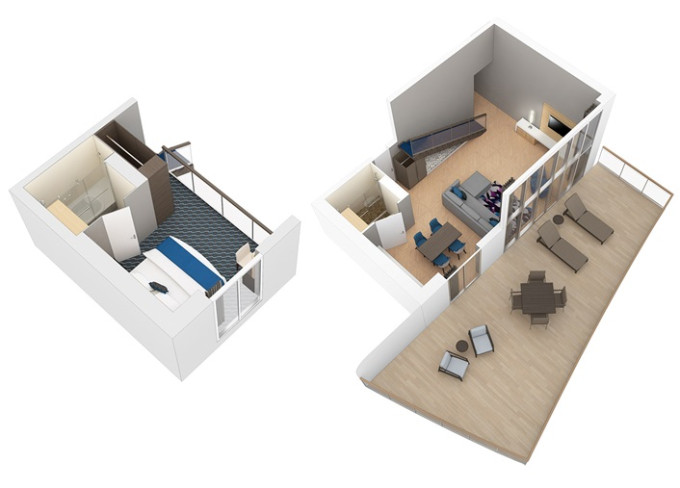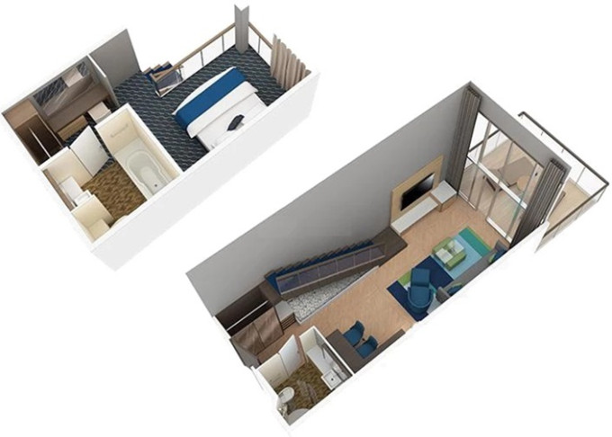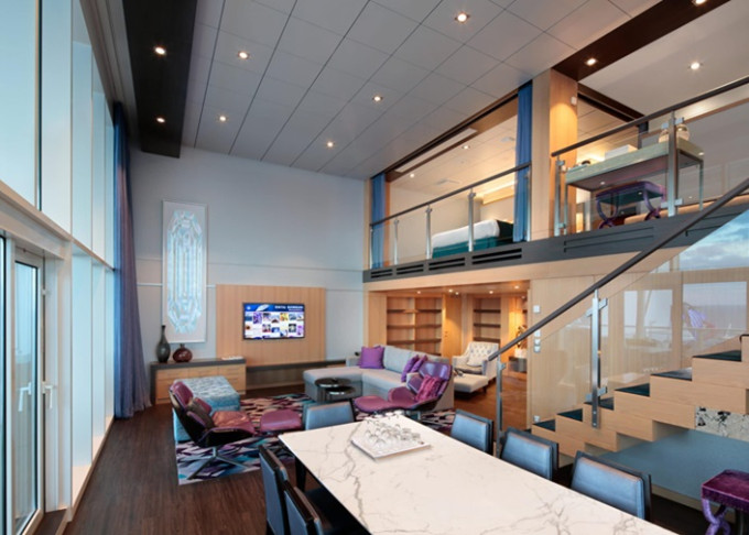 L1 - Crown Loft Suite s balkónom od 68,5 m² + balkón 13 m². 2-podlažný apartmán. 17. paluba. Max 4 osoby. Výhody Royal Suite Sky Class. 8 491 € 8 491 € za osobu