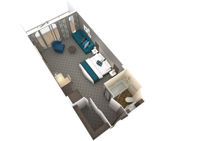 2I - Kajuta s balkónom Boardwalk View 17 m² + balkón 5 m² (výhľad na Boardwalk). Max 2 osoby. 3 892 € 973 € za osobu