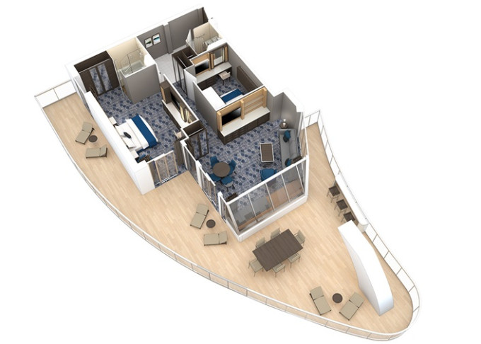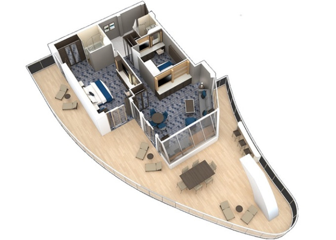 OS - Owner’s Suite s balkónom 51,5 m² + balkón 22 m². Max 4 osoby. Výhody Royal Suite Sky Class. 9 401 € 9 401 € za osobu